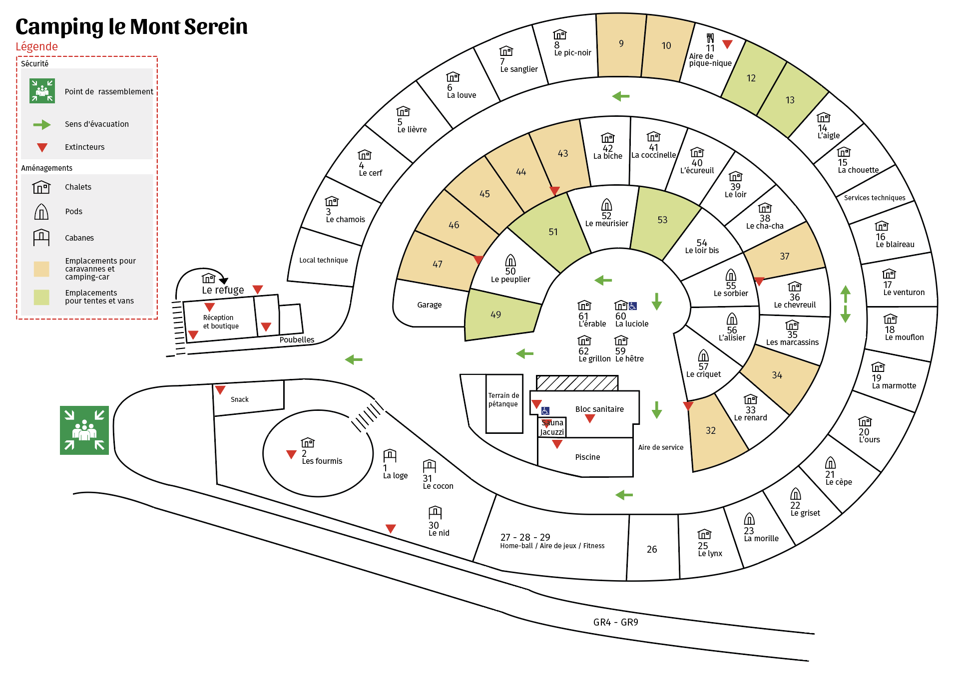 Le camping comprend 56 emplacements dont: